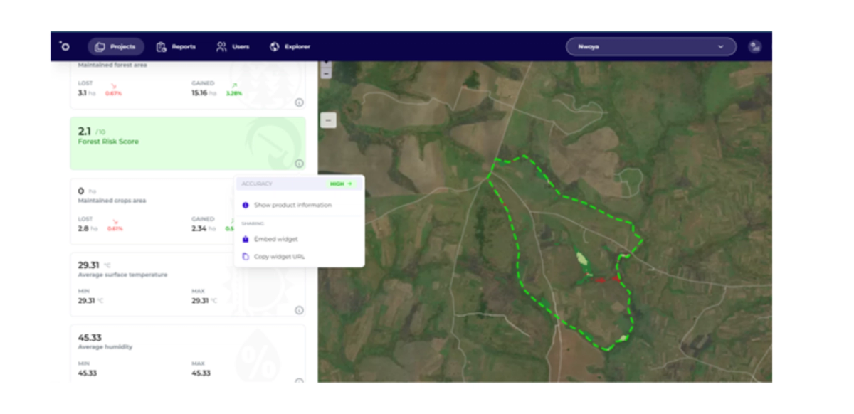 Its advanced geographic data entry and time series analysis capabilities, provides essential insights into forest loss trends, deforestation rates, and the overall health of the land. These insights are crucial for the strategic planning of projects, often eliminating the necessity for initial on-site evaluations. This functionality is particularly valuable for a streamlined and geographically widespread team like 1MTN's, enabling rapid expansion of their project portfolio and seamless integration of new land areas. Furthermore, Orbify's features for measuring biomass and monitoring vegetation health via the NDVI tool are invaluable for project reporting and promptly addressing any issues.