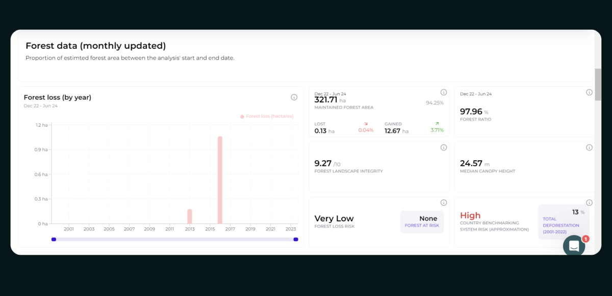Boosterra needed a solution to provide this ongoing transparency—with up-to-date data on land cover, risk factors, enriched with reportable indicators—while being automated, easy to understand, and scalable to build that trust.