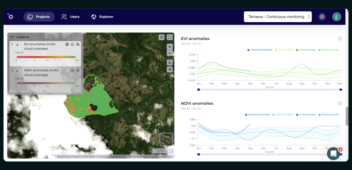 - EVI (Enhanced Vegetation Index) and NDVI (Normalized Difference Vegetation Index) anomaly data, providing basic transparency regarding vegetation health.